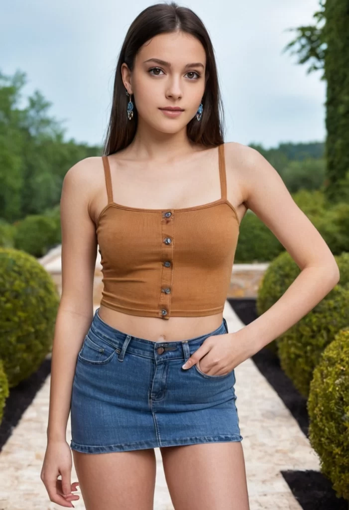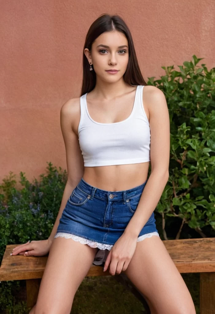 Sensualidade construída com limites claros, direção ética e estética premium. O styling ancora-se na foto novinha de mini saia como statement de design, enquanto a linguagem corporal trabalha insinuação elegante, sem apelos explícitos.